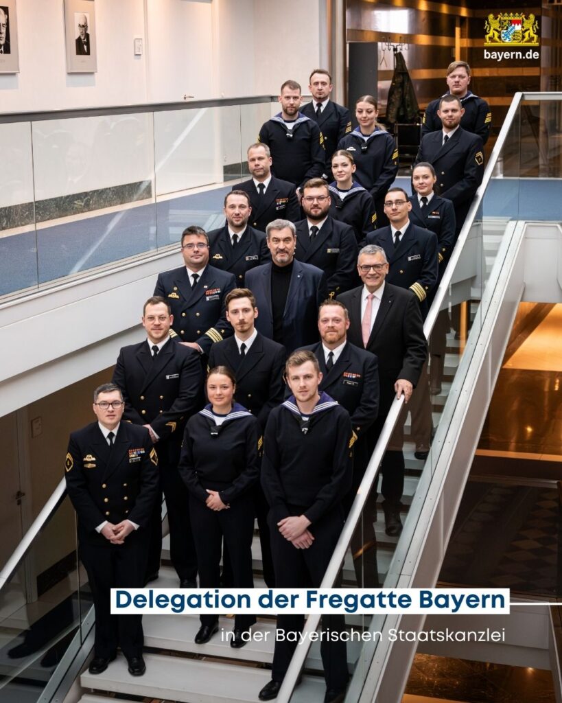 In der ersten Dezemberwoche konnten wir wieder eine Delegation unseres Schiffes in Bayern begrüßen. Der Kommandant Fregattenkapitän Michael Klöfkorn-Dorscht hatte diesmal neben Mannschaften und Unteroffizieren auch seine Schiffsärztin und seinen neuen Ersten Offizier „eingepackt“. Organisiert durch die Patenschaftsvertreter in der Bayerischen Staatskanzlei, das Landeskommando Bayern und den Freundeskreis standen neben Skifahren und Eisstockschiessen auch einige Besuche und auf dem Programm.